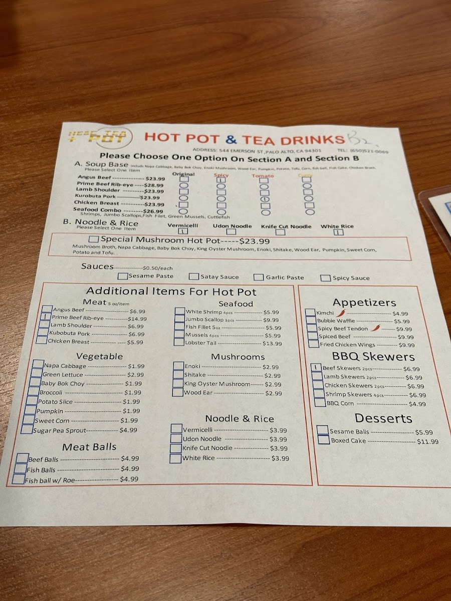 Welcome to HE&C Tea Pot, a culinary gem nestled in Palo Alto. This exquisite hotpot restaurant is designed for food enthusiasts seeking warmth and flavor. Located at 544 Emerson St, the ambiance is inviting—a perfect escape on chilly days.